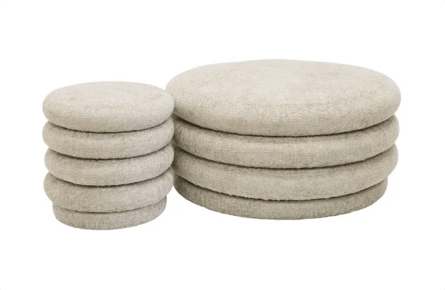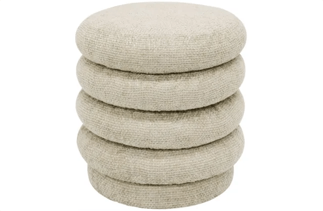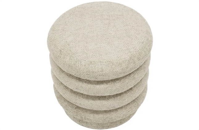 Add a touch of style and comfort to your living space with the Pebble Round Foot Stool. Upholstered in 100% polyester fabric and filled with 26D sponge, this beige ottoman offers both durability and comfort. Its sturdy plywood frame ensures long-lasting support for your feet or as extra seating for guests.