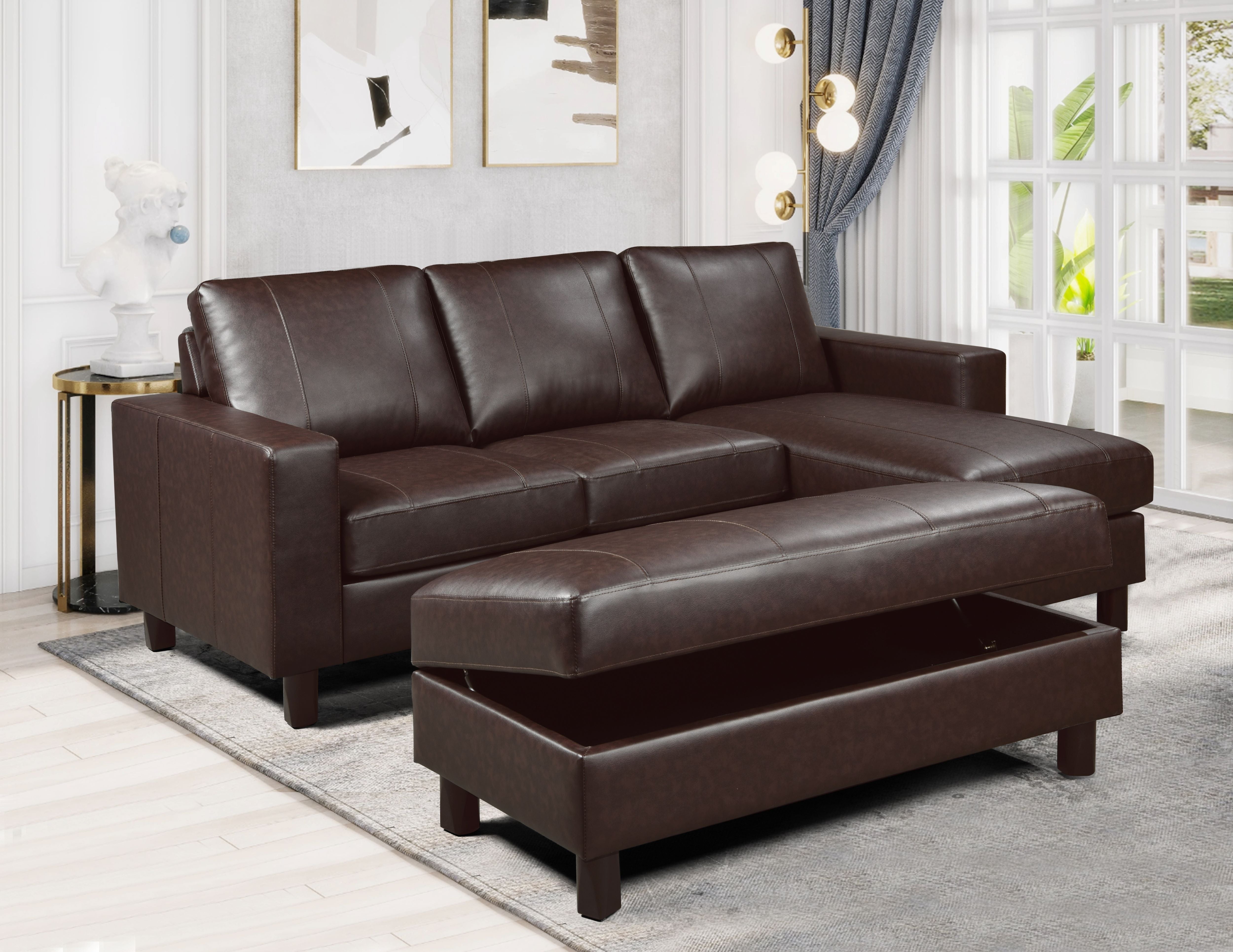 Elevate your living area with the stylish and versatile Perth Corner Lounge with Chaise. Crafted from luxurious Air Leather, this couch comes in refined black or chic grey, perfect for complementing any decor. Its interchangeable chaise allows for effortless personalization, while the integrated storage ottoman enhances both its modern flair and functionality.