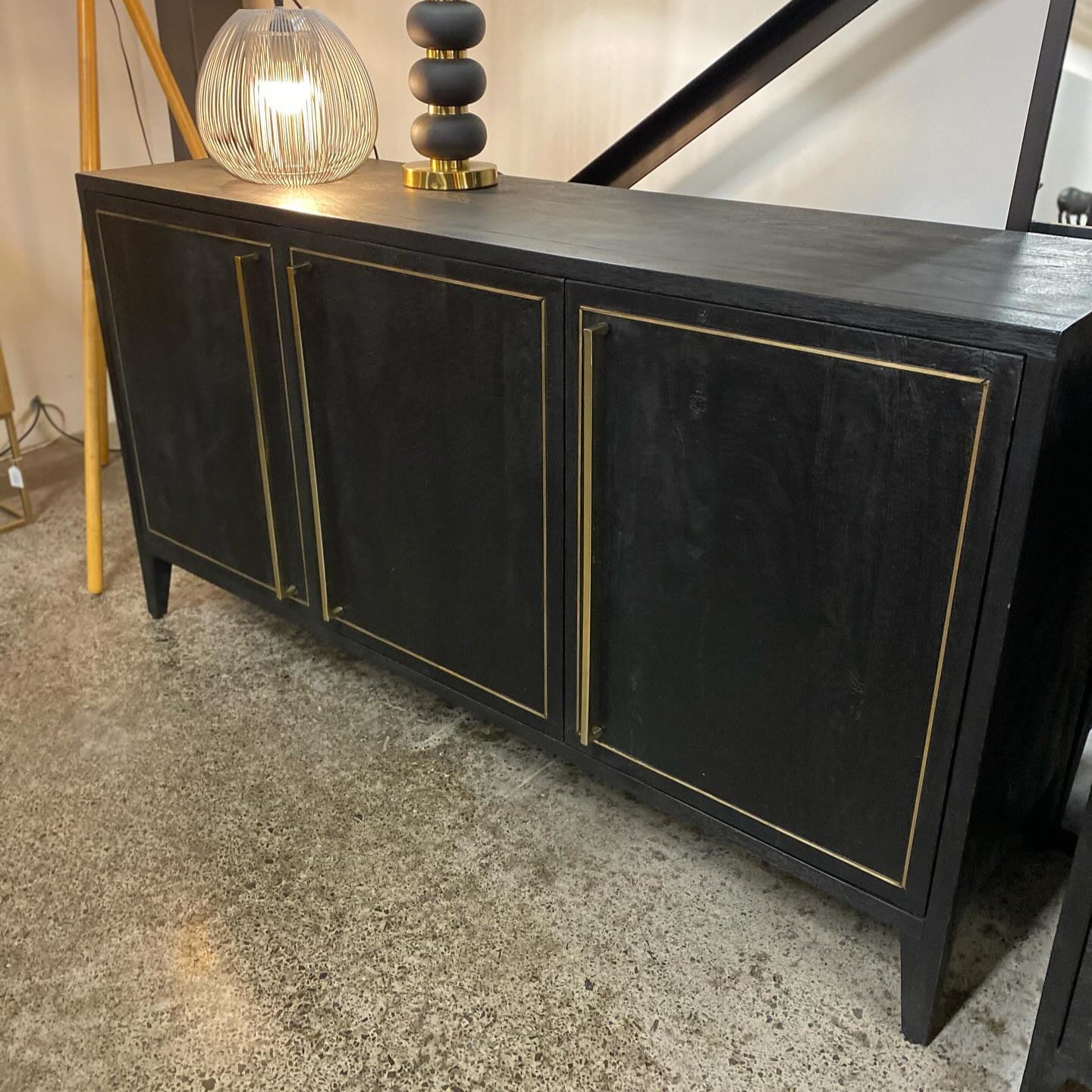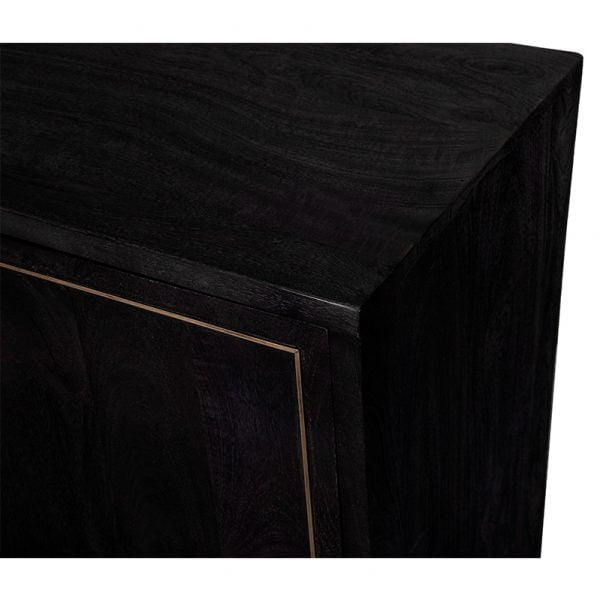 Elegant Hardware: The sophisticated black and brass color scheme is accented by subtle brass-toned details on the handles or legs (implicit in the description), adding a touch of luxe elegance to the overall modern-rustic look.