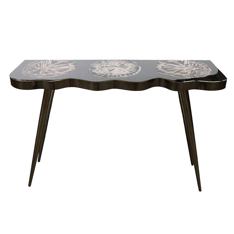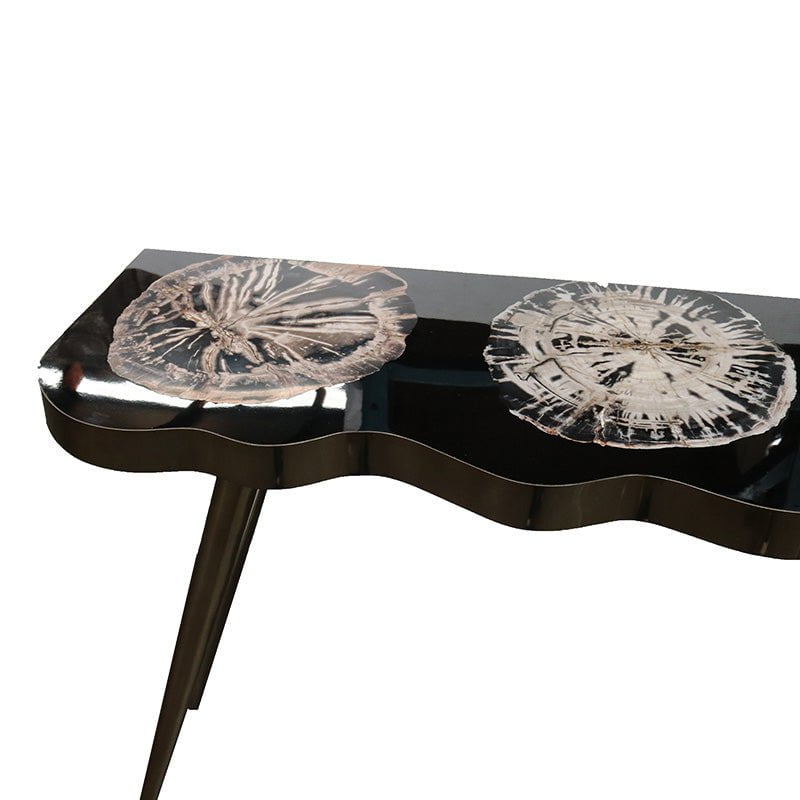 Transform your space with the one-of-a-kind Petrified Wood Wave Console Table. Crafted from petrified wood, each table features a unique wave design, bringing natural beauty and texture into your home. Perfect for adding a touch of rustic, yet elegant charm to any room.