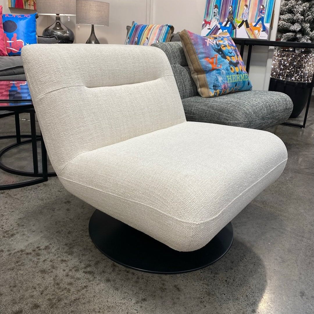Introducing the luxury Phantom Swivel Club Chair in Ivory. With its sleek and modern design, this chair is the perfect addition to any sophisticated space. Made with high-quality polyester fabric and featuring an iron swivel base, this chair combines style and functionality. Add a touch of elegance to your home or office with the Phantom Swivel Club Chair.