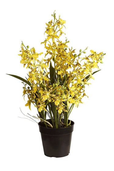 Add a touch of life to any room with our Potted Dancing Orchid! Standing at 58cm tall, this faux plant is low maintenance and comes in a vibrant yellow color. Housed in a sleek black plastic pot, with a diameter of 15cm and height of 13cm, it's the perfect addition to your home decor!