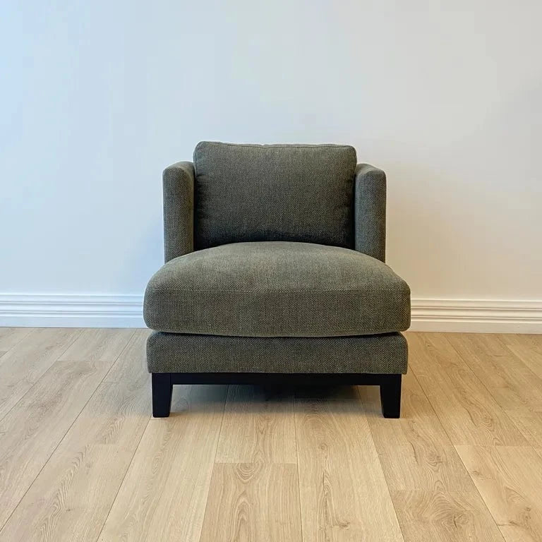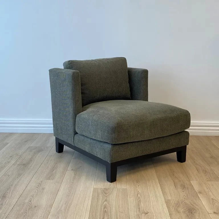Inviting and comfortable, the Remington chair is upholstered in a luxe, textured fabric, creating the ultimate in casual luxury. Its open cushioned seat is offset by its encompassing sides and back, generating a feeling of comfort and relaxation. Elevated with a sleek black base, this elegant lounge chair is sure to turn heads.