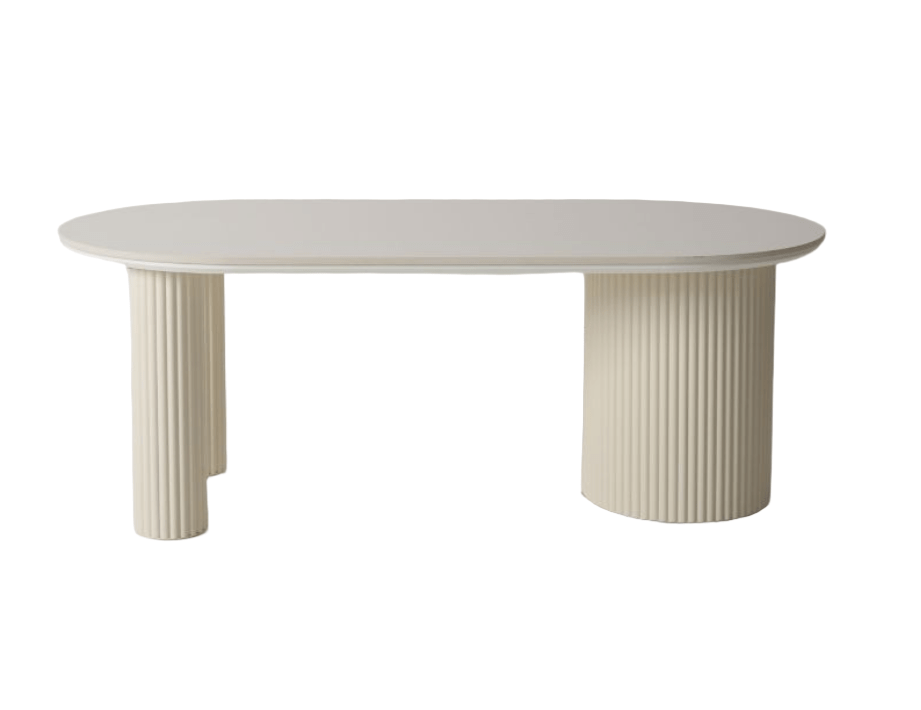 Incorporating three Roman-style column legs, this coffee table exudes modern minimalism. Its neutral hue makes it a versatile piece that effortlessly complements any decor. Easy to style with a no-fuss design, this table is a must-have for any space.