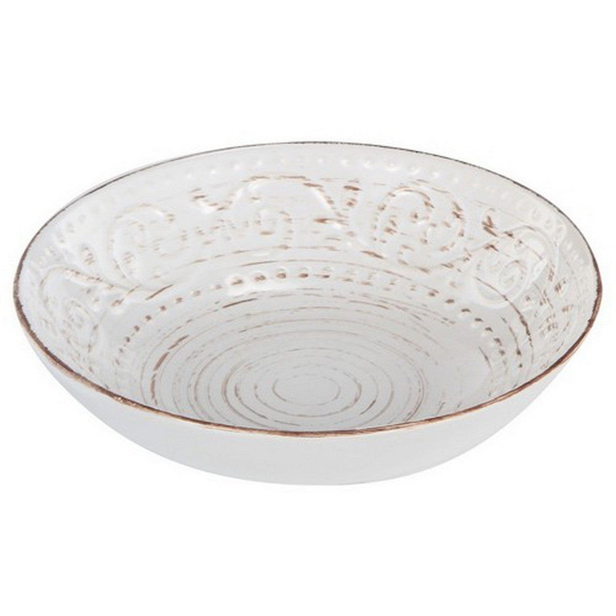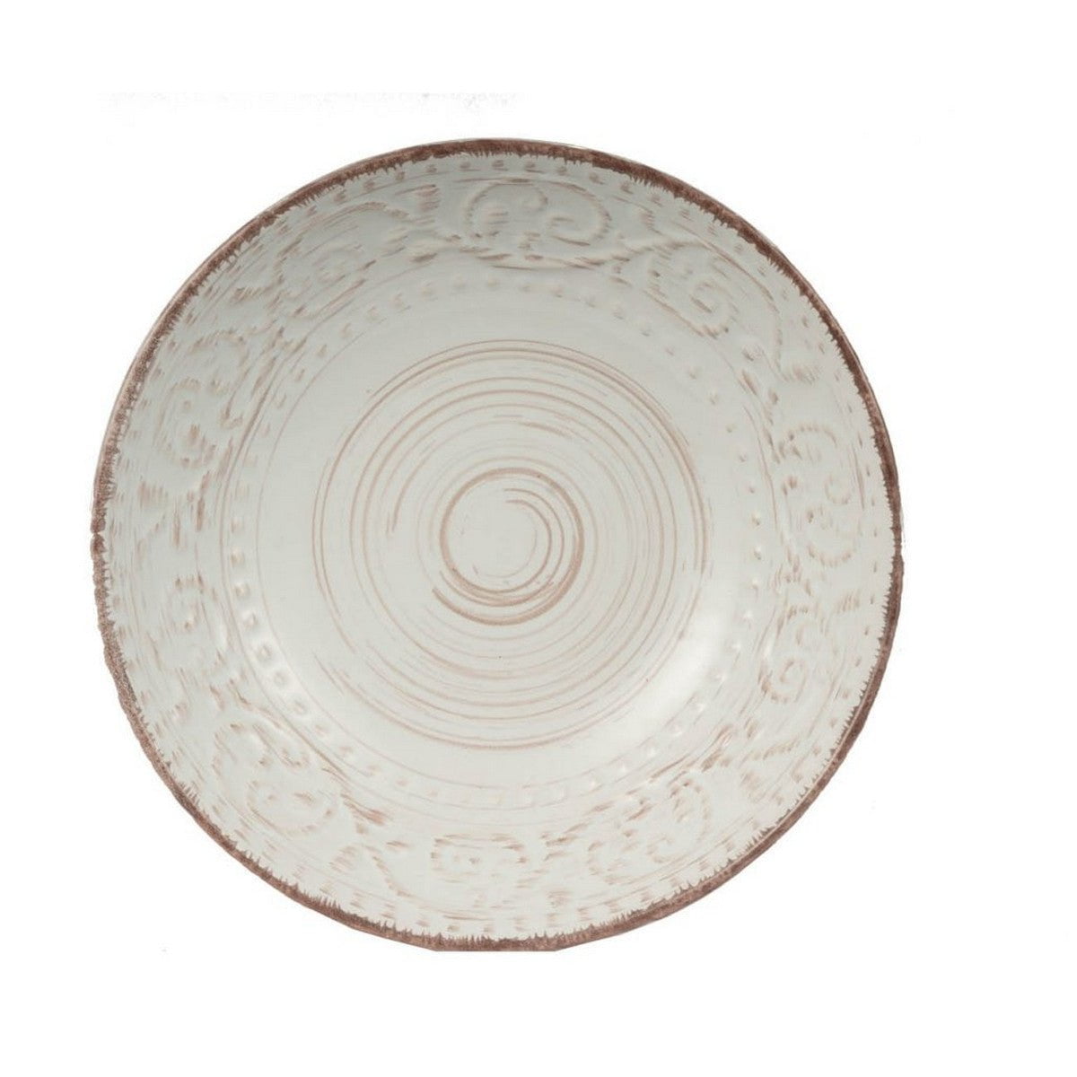 This Rustic Fare Bowl is one of a kind with a stunning swirling pattern and antiqued white finish. It will add rustic elegance to your dinner table and hold up to everyday use. Stoneware is strong and durable to last for countless meals. This versatile bowl is microwave and dishwasher safe for easy use. Enhance your home decor with timeless beauty.