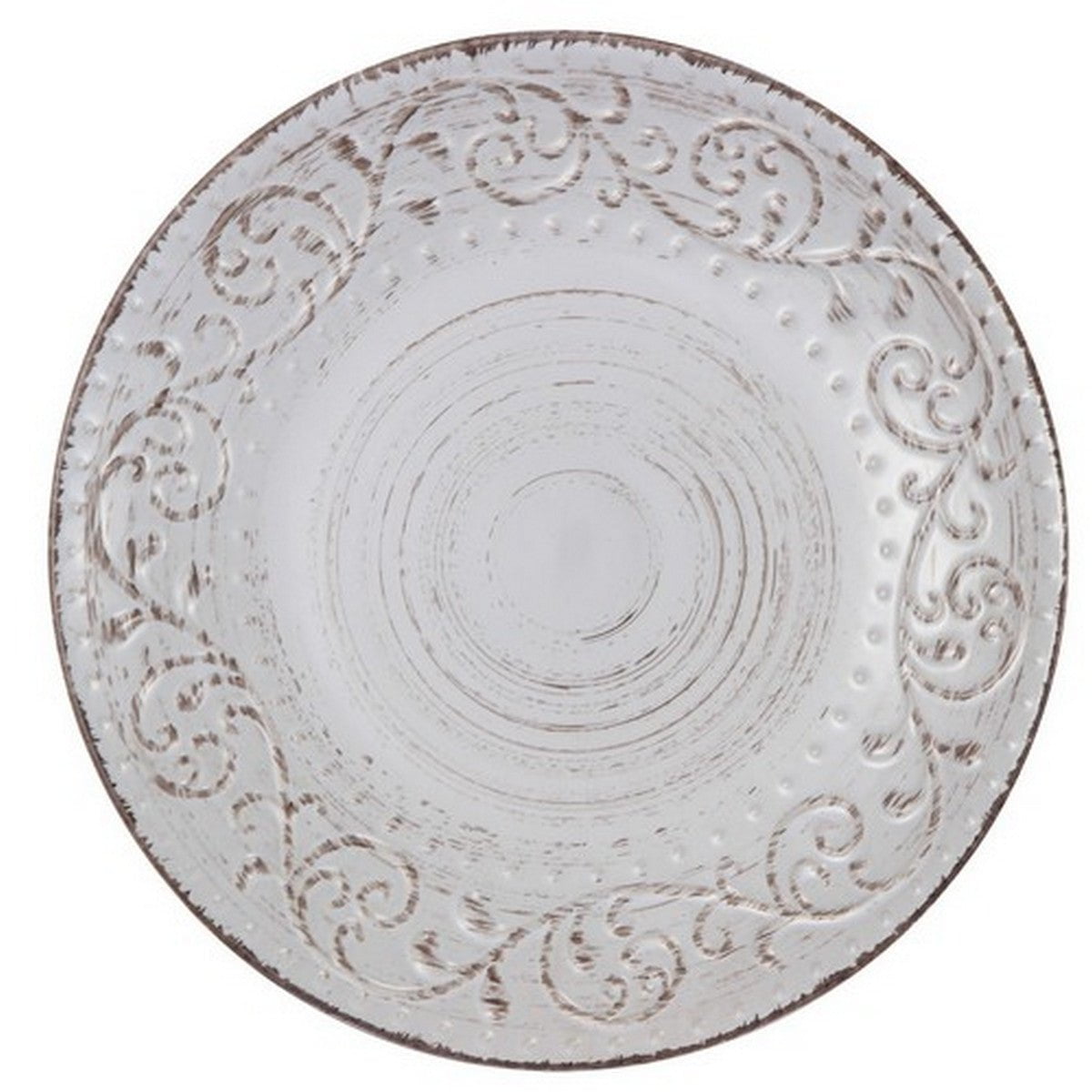Embrace the rustic elegance of the Rustic Fare Dinner Plate - Cream. This stoneware plate features a gentle swirling pattern, delicate beading, and antiqued white finish for a captivating dinner table. Microwave and dishwasher safe for convenience and lasting durability. Bring ageless beauty to your tablescape with Rustic Fare.
