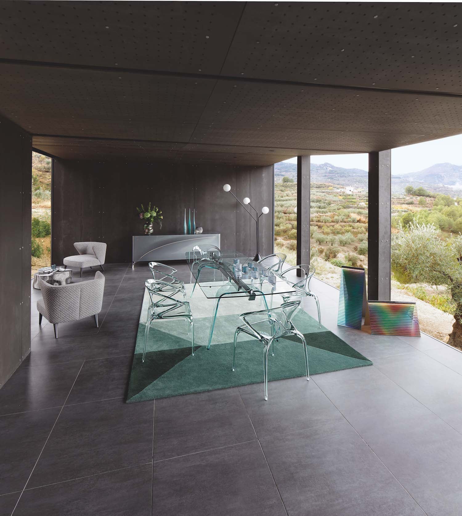 Elevate your dining experience with the sleek and stylish Saturn Transparent Chair. Crafted from polycarbonate cast, this chair is not only elegant, but also highly durable and stackable. Choose from a variety of opaque, glossy, and matte shades to match your personal style. Practical and refined, Saturn is the perfect addition to any dining space.