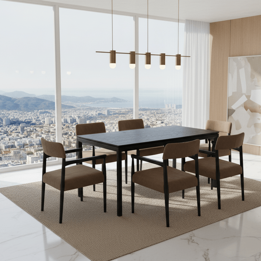 The foundation of the suite, the Savannah Dining Table, is designed for both elegance and durability. Crafted from high-quality Oak Wood with a warm Walnut finish, its sleek and timeless design ensures it remains a perfect centerpiece for years to come.