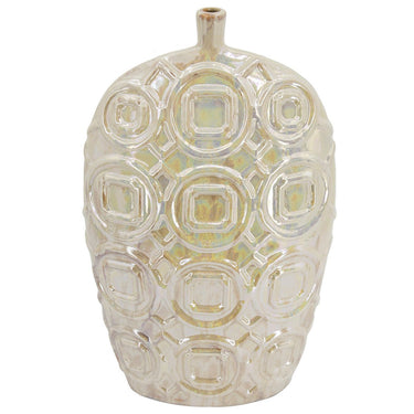 Elevate your home decor with the SHELBY TALL IRIDESCENT GLAZE CERAMIC VASE. This beautifully crafted vase features a unique iridescent glaze that adds a touch of elegance and sophistication to any room. Its tall, sleek design makes it the perfect statement piece for showcasing your favorite flowers or simply displaying on its own. Add a touch of style and charm to your space with the SHELBY TALL IRIDESCENT GLAZE CERAMIC VASE.