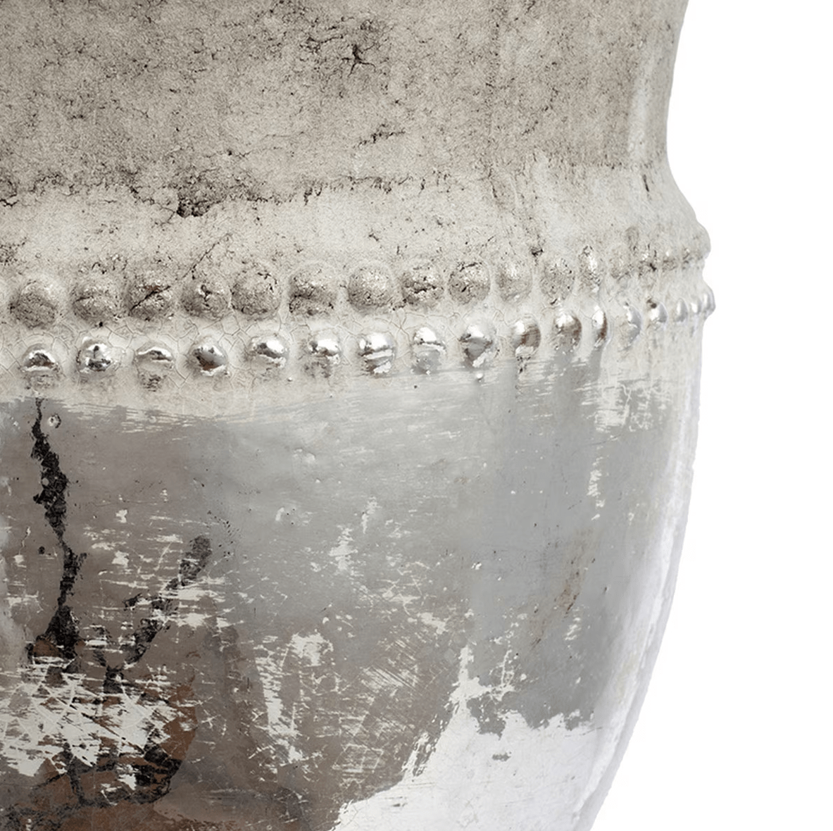 By combining delicate beading, a slick metallic shine, and the warmth of an aged finish, this set of two Uma Pots offers a classic yet distinctive look.