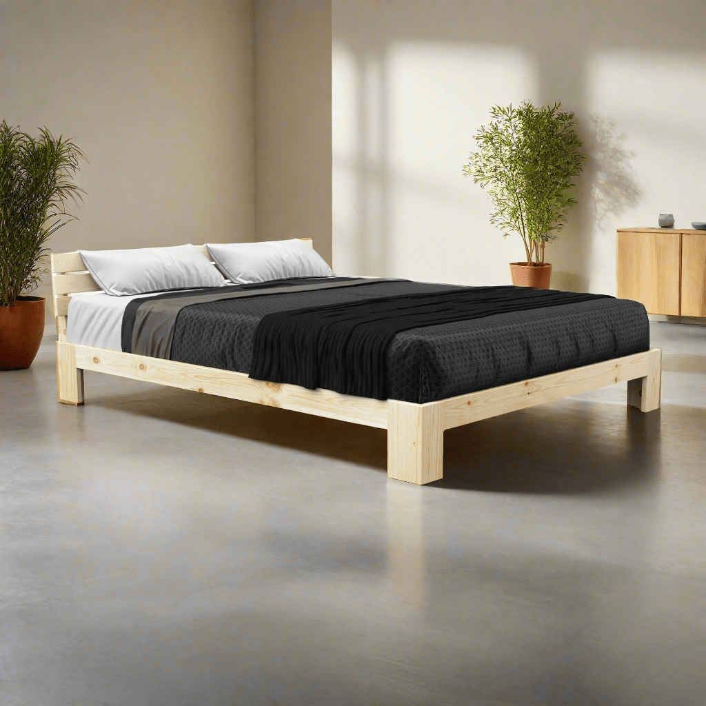Transform your bedroom into a cozy retreat with our Simple Bed Frame in Double size. Made of solid pine, its natural color adds warmth to any room. Sleep soundly knowing your bed is sturdy and made to last. Upgrade your room today!
