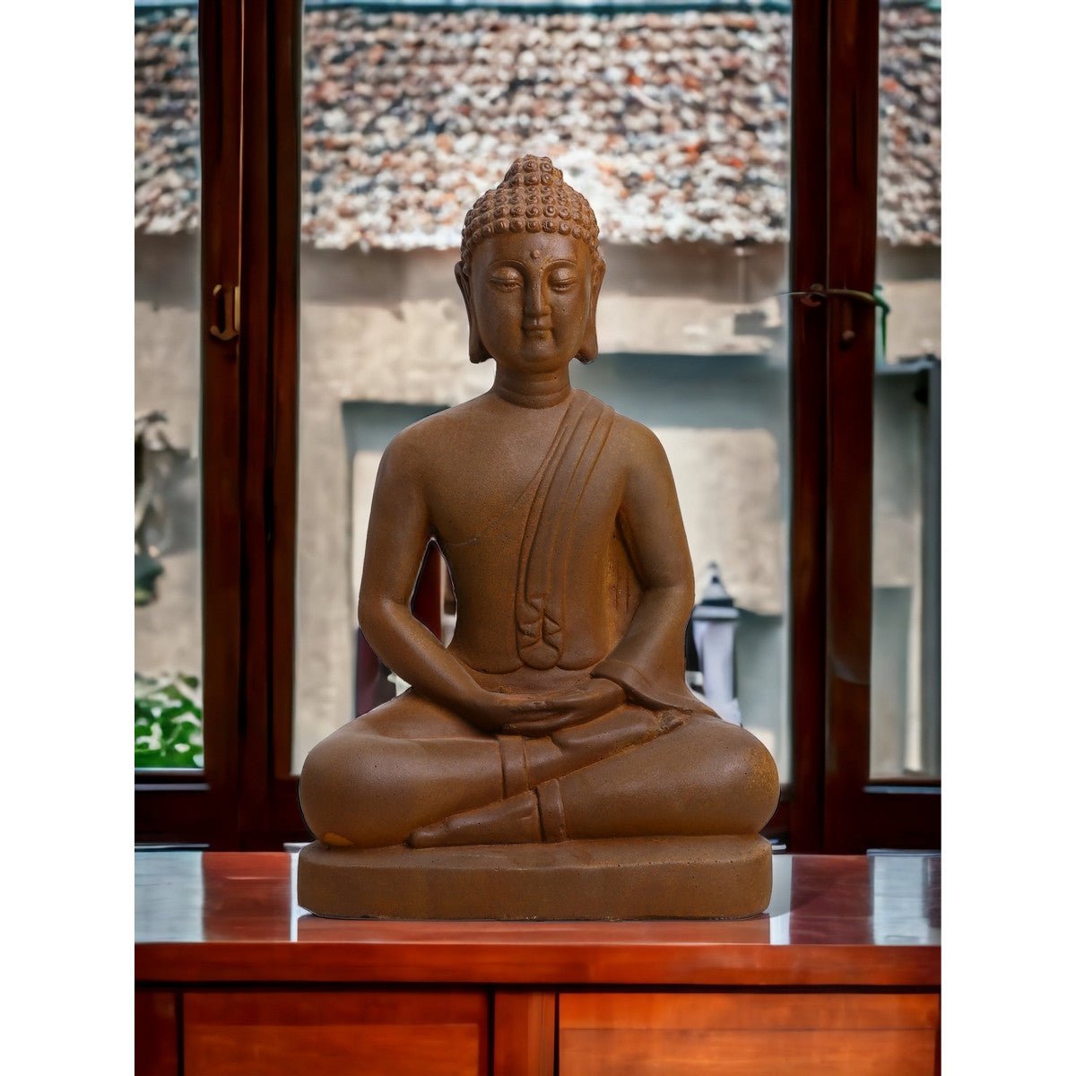 Invite serenity to your home with this Sitting Buddha statue. Crafted from terracotta, each piece is uniquely aged with rust hues, creating a timeless and tranquil presence. At 49cm high, this beautiful piece will bring peace and calming energy to your space for centuries to come. Spread harmony with this special piece!
