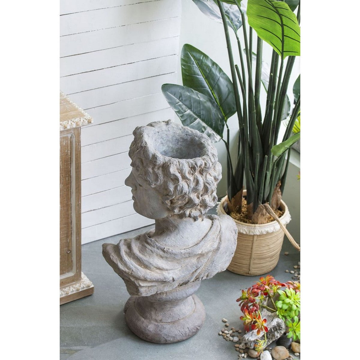 Discover an unparalleled sophistication with this Greek God Statue. Boasting detailed curls and a draped cape, its intricate details and aged grey colouring give it the look of a timeless antique. Constructed of 75% magnesium and 25% fiberglass, it will provide a dignified and enduring accent in your garden, natural or formal.