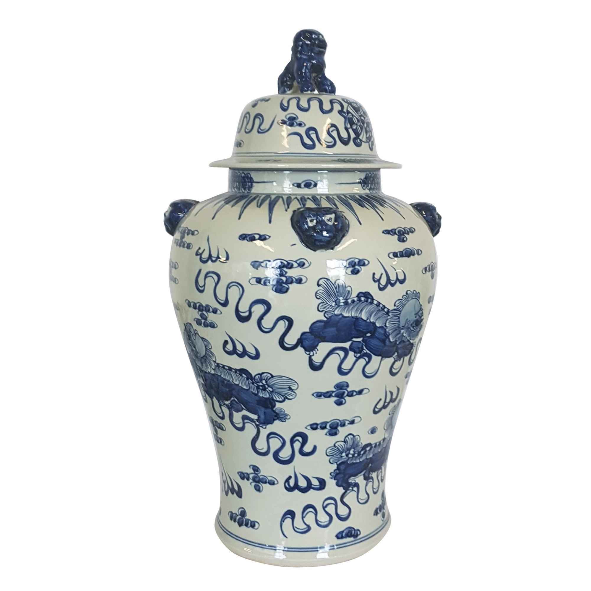 Elevate your home decor with our exquisitely crafted Temple Jar adorned with intricately hand-painted small dragons and a regal lion on the lid. The stunning blue and white color combination adds a touch of elegance to any space. Experience the majestic beauty and timeless charm of our Temple Jar!