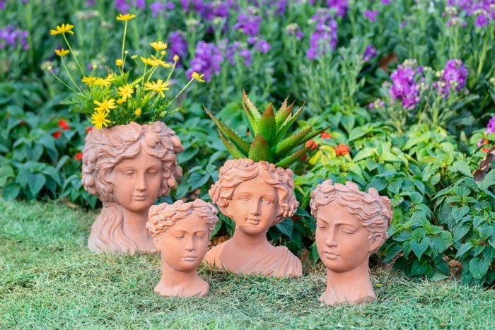 Small décor pieces can really add character and style to any space, the unique design of this terracotta visage head planter make it a functional decorative item.