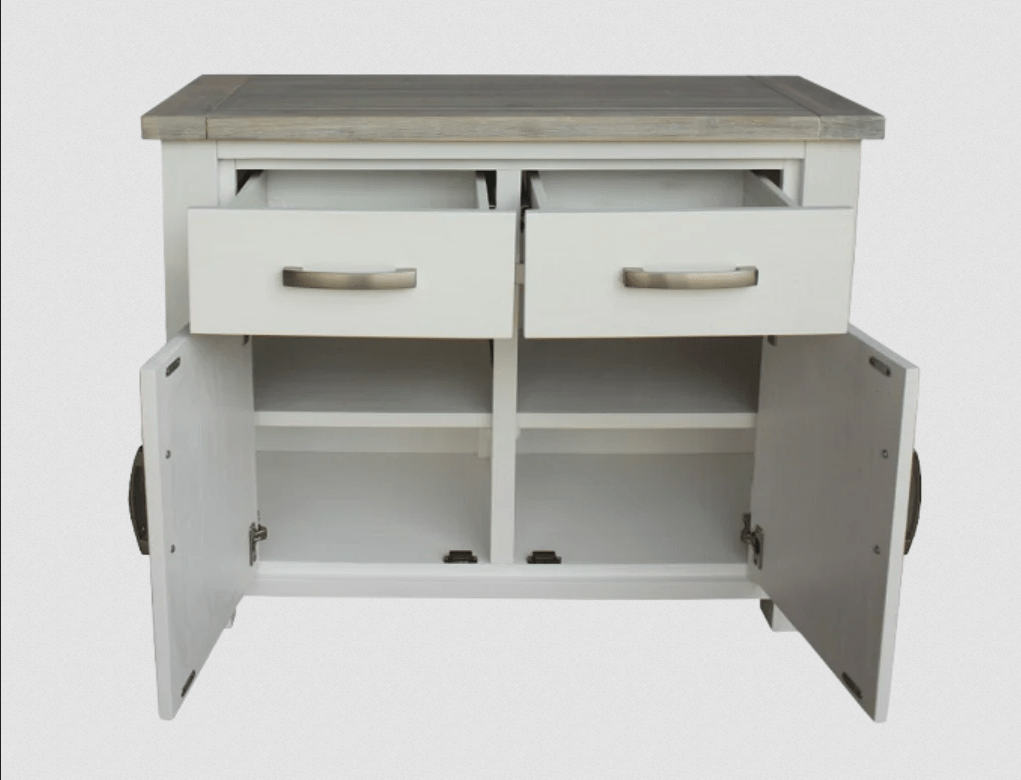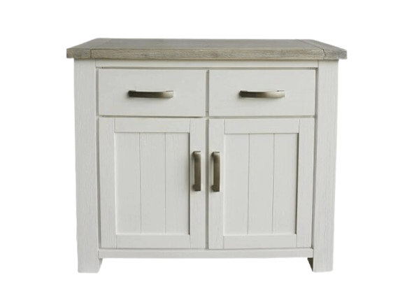 Indulge in luxury with the Tonya Buffet Table Small. Its elegant design features a white-washed finish on high-quality acacia wood, complemented by an ashwood top. With two doors and two drawers that glide on solid metal runners, it offers ample storage space. The middle shelf behind doors adds to its functionality.