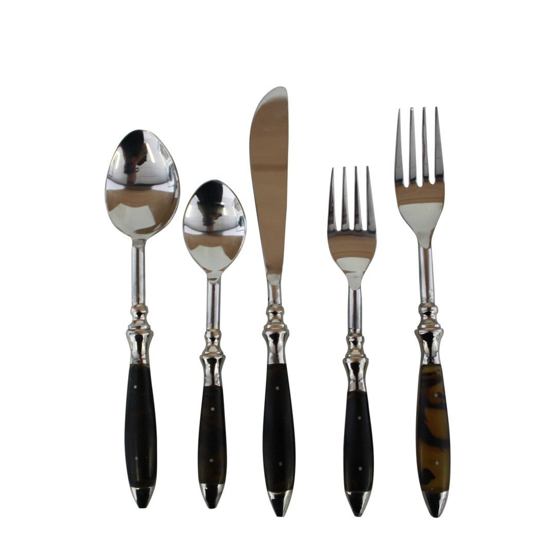 Embellish your dinner table with the exquisite Tortoiseshell Cutlery Set for 5, featuring a stunning combination of brown and silver. Crafted with premium materials such as stainless steel, brass, and resin, this set exudes sophistication and elegance.