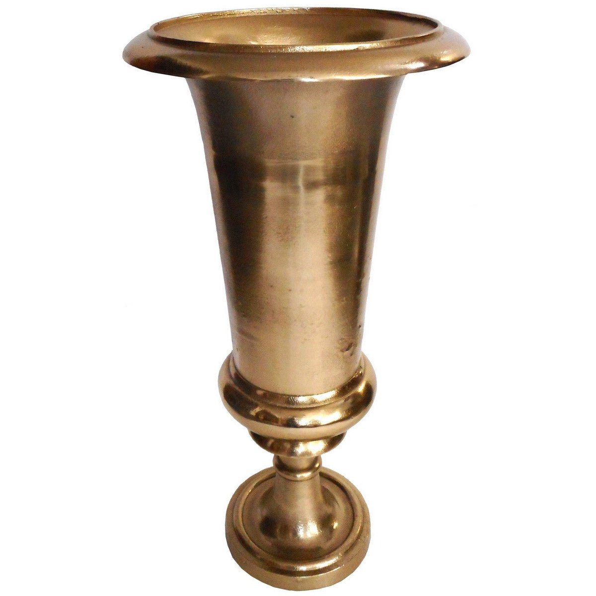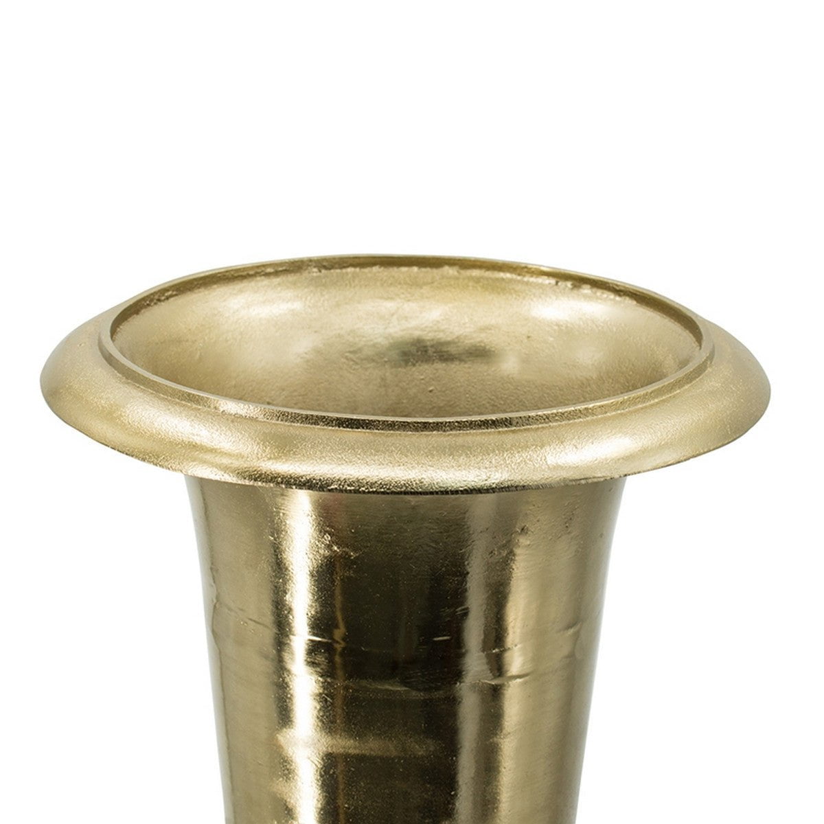 Add a touch of rustic charm to any space with our gold metal vase. Featuring a tapered wide mouth, it's perfect for showcasing flowers or as a stylish centerpiece. Elevate your traditional decor with this medium-sized vase.