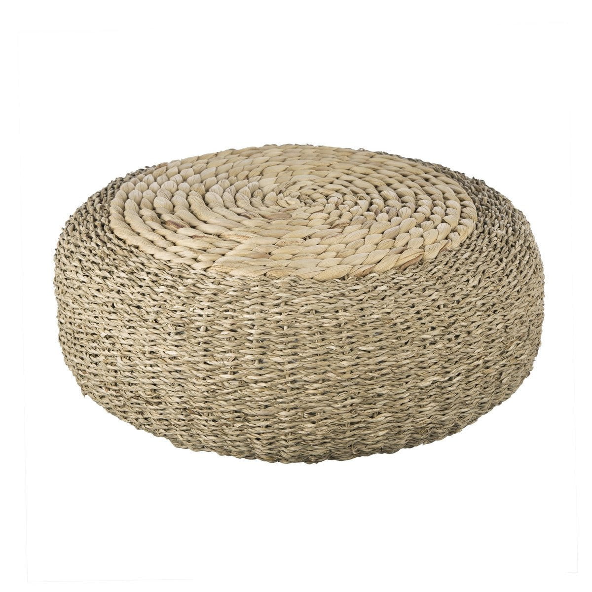 The Water Hyacinth Pouf provides a unique and stylish addition to any living space. It's eco-friendly and handmade from natural materials. It features a tightly-woven construction and an all-weather finish for a durable and reliable design. With its efficient water hyacinth fibers and natural water repellant coating, this poof offers resilient outdoor and indoor comfort.