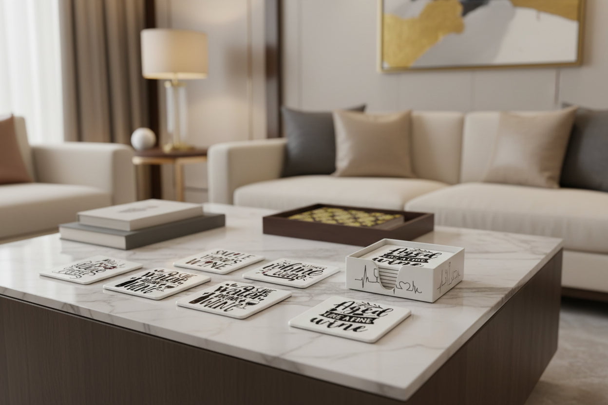 Premium Ceramic Build: Crafted from durable ceramic, these coasters are designed to handle condensation and heat, keeping your furniture pristine.