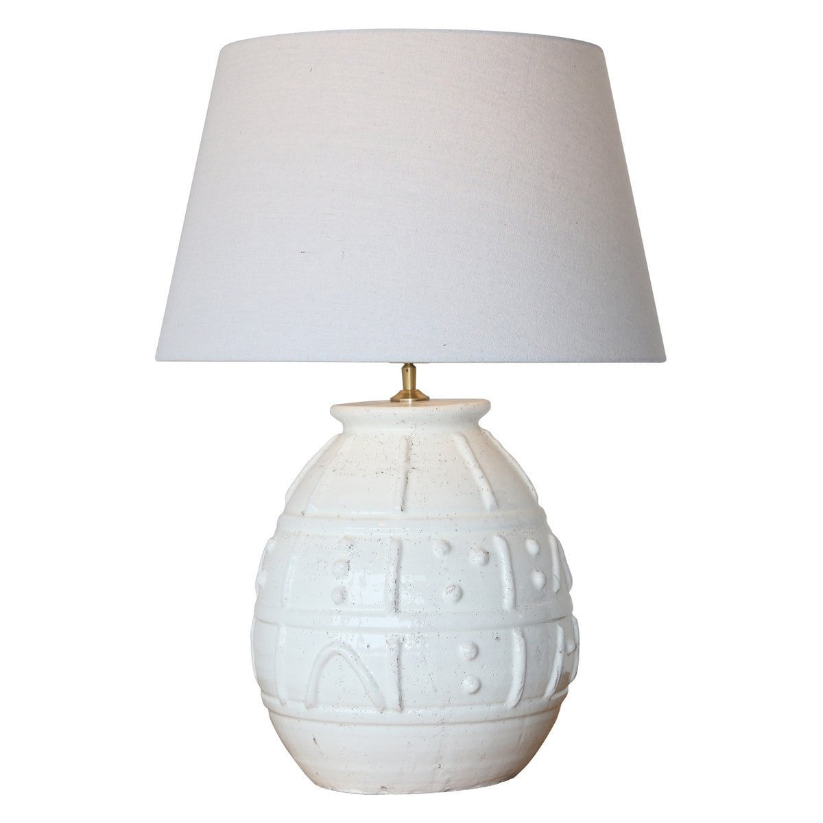 This terracotta lamp adds a touch of sophistication to any room. Its white linen shade creates a gentle, diffused light that is perfect for reading, relaxing and more. A beautiful addition to any décor!
